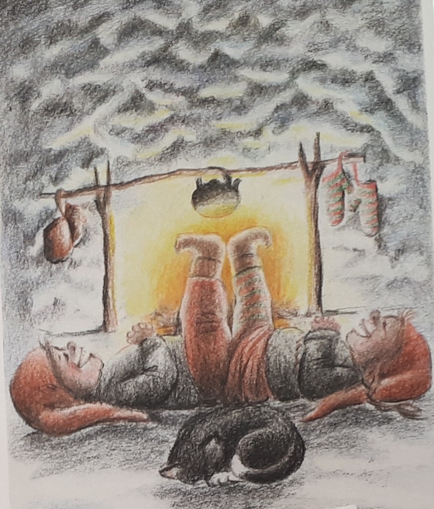 Oli helteinen kesäpäivä Joensuun torilla. Olin myymässä keramiikkatuotteita torikojussa ja aloin varjossa istuessani piirrellä. “Nyt pitäisi miettiä jo joulua..” ja niin alkoi syntymään lumiukon ääriviivat. Seuraksi syntyi tonttu, joka halusi tervehtää lumiukkoa, kuten lapsena leikkiessäni papan kanssa.