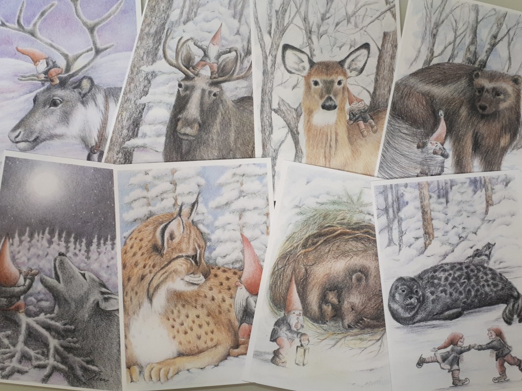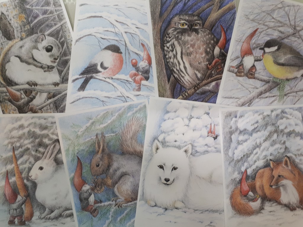Piirrän joka vuosi uusia joulukortteja, jotka painatan Joensuussa.